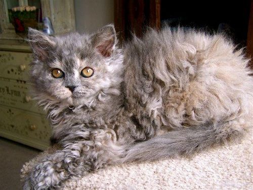 Затем заводчица продолжала еще долго экспериментировать, скрещивая получившихся котят друг с другом, с персидскими котами, с короткошерстными, с длинношерстными, с британскими и именно скрещивая все эти породы между собой получилась порода селкирк рекс: волнистая шерсть, круглая мордочка и большие глаза.